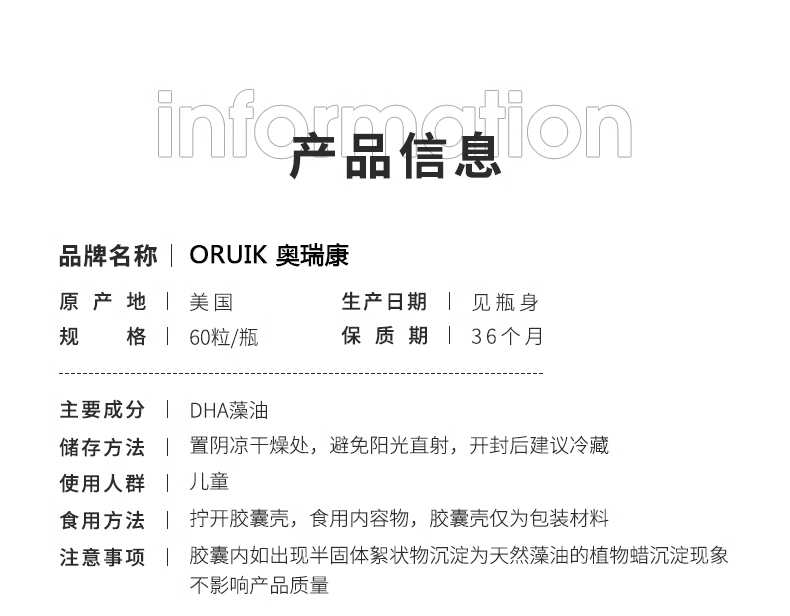 您所在位置:首頁>深圳市奧瑞康生物科技有限公司>奧瑞康DHA藻油軟膠囊
