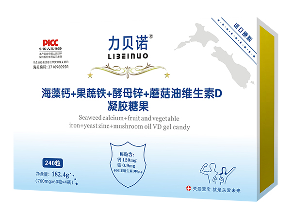 力貝諾海藻鈣+果蔬鐵+酵母鋅+蘑菇油維生素D凝膠糖果產(chǎn)品展示