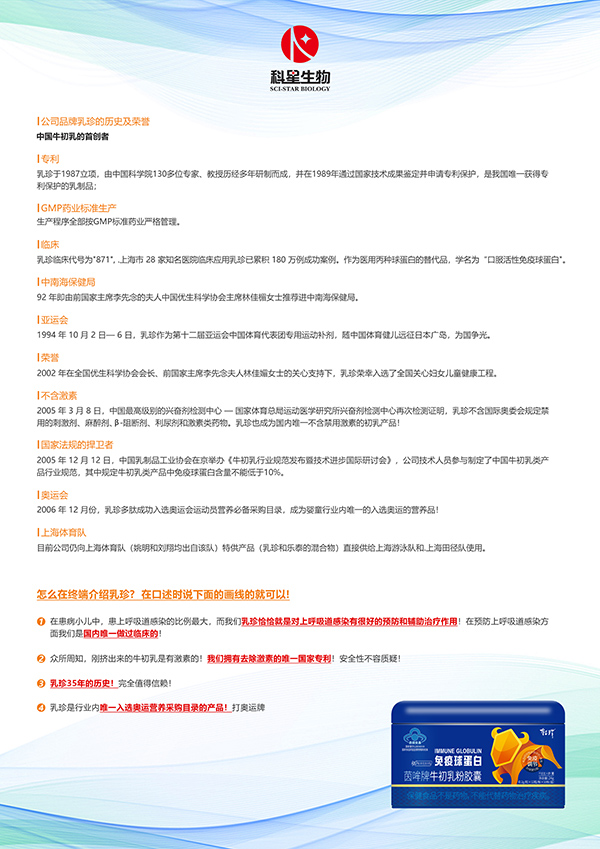 中科乳珍,中國科學院生命科學研究院研制,35年有效臨床經(jīng)驗!民族品牌,藍帽品質(zhì)!每粒含免疫球蛋白36mg,遠高于市場上的同類產(chǎn)品,特采用ASP活性物質(zhì)保鮮技術,為免疫力低下人群精心研發(fā)設計!嬰幼兒、兒童、成人均可食用,經(jīng)動物及功能實驗評價,具有免疫調(diào)節(jié)的保健功能!